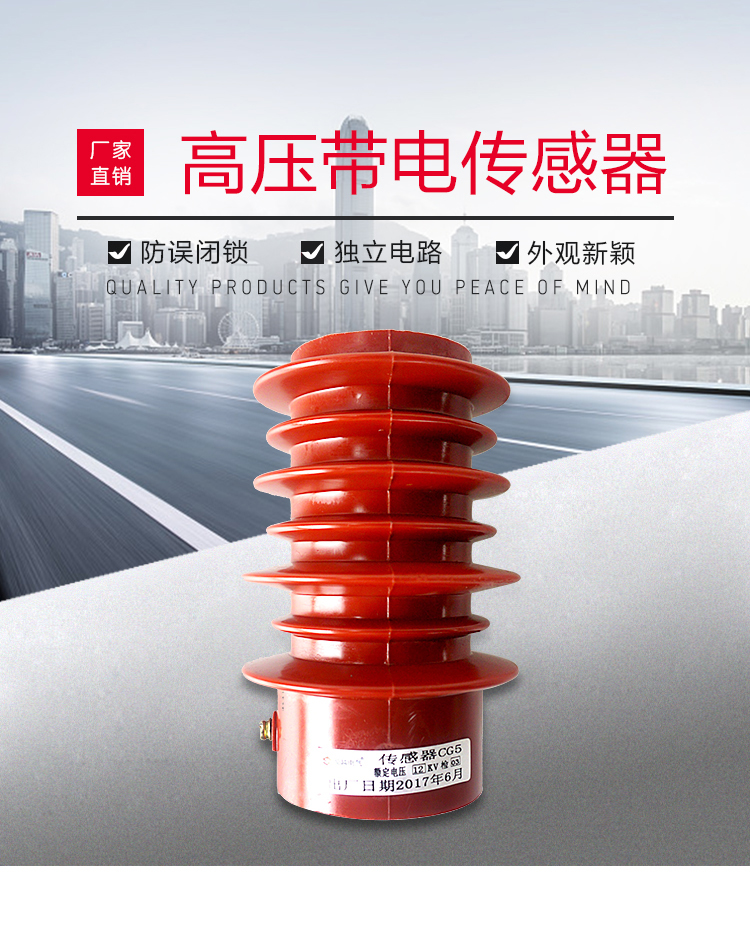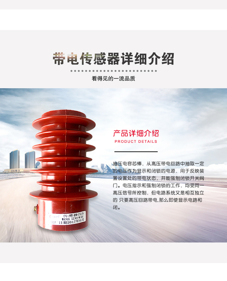 CG5-12KV户内高压带电显示装置传感器适用于12KV的高压配电柜中,通过抽压电容芯棒,从高压带电回路中抽取一定的电压作为显示和闭锁的电源,用于反映装置设置处的带电状态,并能强制闭锁开关网门。电压指示和强制闭锁的工作,均受同一高压信号所控
